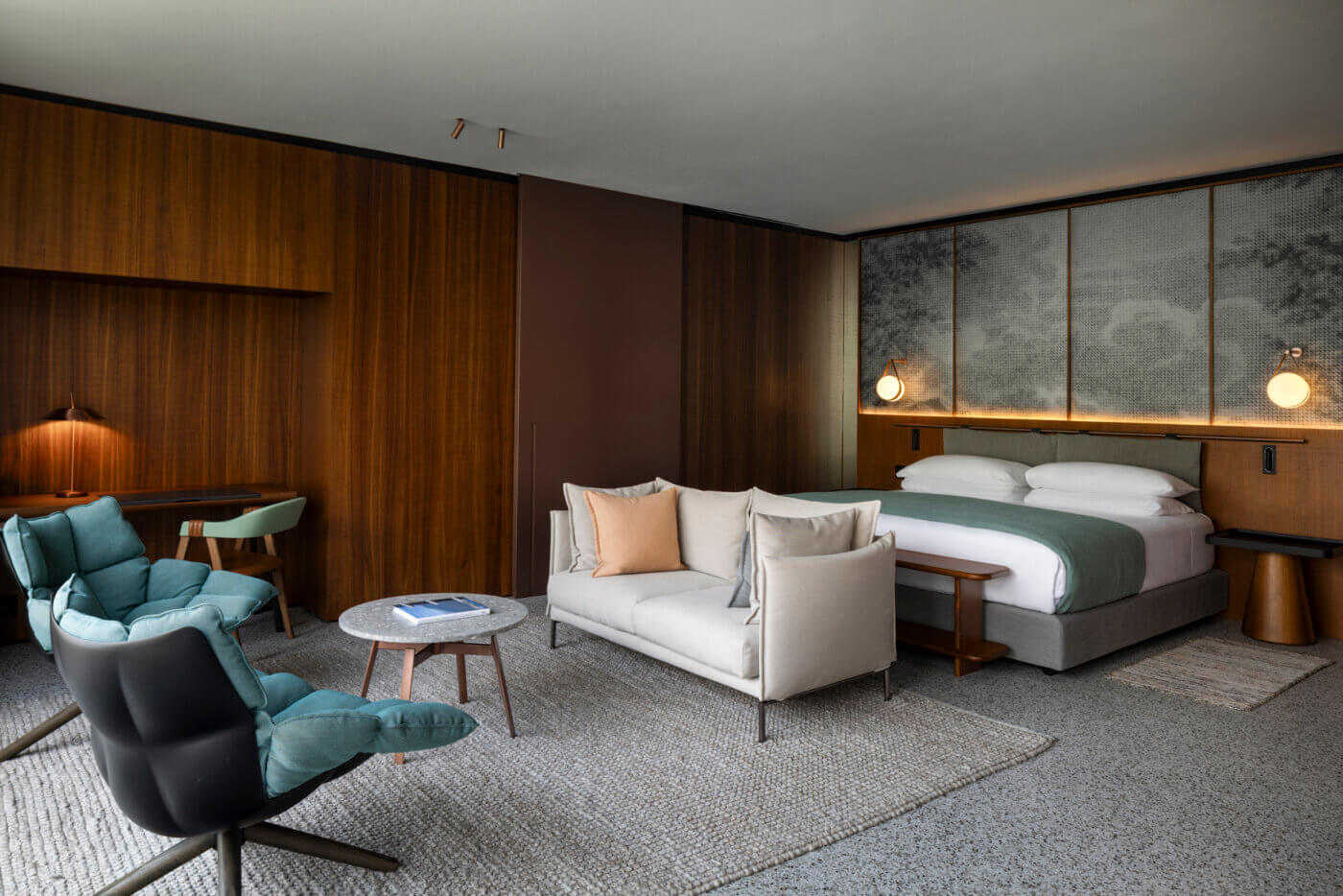 Parmi eux, il y a la Darsena Listening Suite, mentionnée dans le dossier de presse comme l’une des expériences les plus singulières de la maison. Inspirée des salles d’écoute japonaises, cette suite dédiée à la musique propose un espace feutré, face au lac, entouré de bois et d’équipements analogiques rares, pour une écoute immersive et profonde. Dit autrement : un endroit où l’on ne consomme plus le son comme un bruit de fond, mais comme un paysage à part entière.