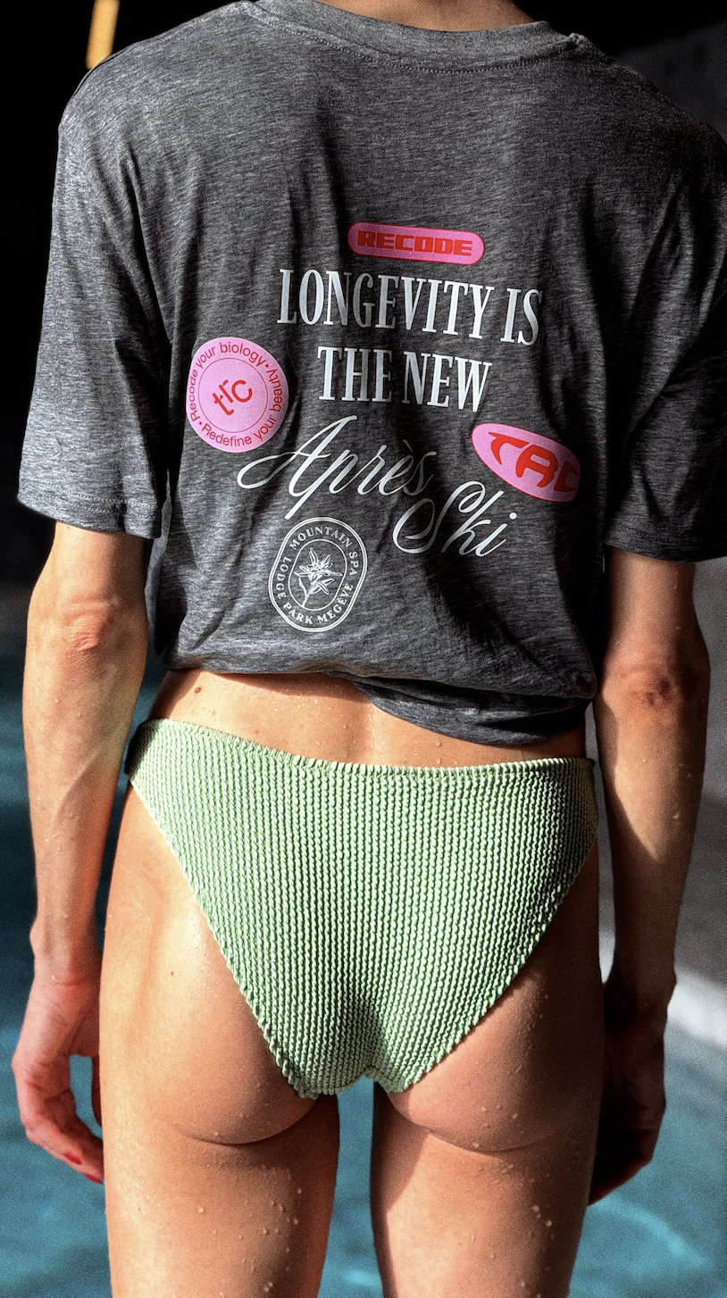 The Recode Club réussit assez bien cette alliance. Il y a la précision du vocabulaire — épigénétique, longévité, terrain, récupération, inflammation, équilibre nerveux. Et il y a l’imaginaire : Megève, la montagne, le spa, le bois, les plantes alpines, le silence, le beau. À la lecture, on a le sentiment que mieux vieillir n’a pas besoin d’être sinistre, clinique ou ascétique. Que cela peut être chic, sensoriel, joyeux même. Marine le formule d’ailleurs ainsi sur son site : un “bien-vieillir chic, éclairé et joyeux.”